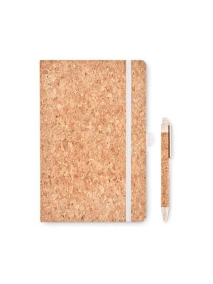SUBER SET Set libreta A5 y bolígrafoLibreta A5 con tapa de corcho, papel rayado y bolígrafo con cuerpo de corcho y clip, punta y pulsador 50% paja de trigo y 50% PP, presentado en caja de regalo.Desde 3,23 € /ud