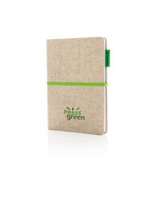 Bloc de notas A5 con tapas duras elaborado a partir de frutas. Interior con 80 hojas de disposición a una raya, con marcapáginas y banda elástica a juego. Disponible en variados colores de acabado kraft. Incluye logotipo Papel de Fruta en contraportada. Presentado en una bolsa individual reciclada..Mediante la mezcla de residuos y desechos procedentes de la industria agroalimentaria, mezclados con otros materiales reciclados, se obtiene un papel 100% sostenible: el papel de frutas. Fomentando su uso se contribuye a la reutilización de materiales, y a un mayor compromiso medioambiental.