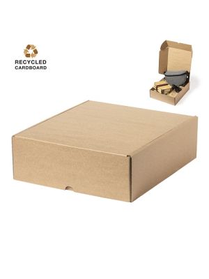 Caja de presentación especialmente diseñada para tazas. Tamaño 12x10,6x9 cm y fabricada en cartón reciclado corrugado de acabado kraft. En línea con la tendencia del mercado hacia la sostenibilidad integral del regalo, ofreciendo soluciones de origen reciclado con el fin de ayudar a la mejora y conservación de nuestro planeta.
