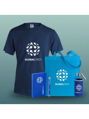 Welcome pack con camiseta y bolsaContiene camiseta, libreta, taza y bolsa. Todos los productos se pueden personalizar. Los productos del pack se pueden cambiar por otros si lo desea.