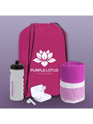 Welcome pack wellness con mochila de cuerdasContiene botella de agua deportiva, auriculares inalámbricos, toalla de deporte y mochila de cuerdas. Todos los productos se pueden personalizar. Los productos del pack se pueden cambiar por otros si lo desea.