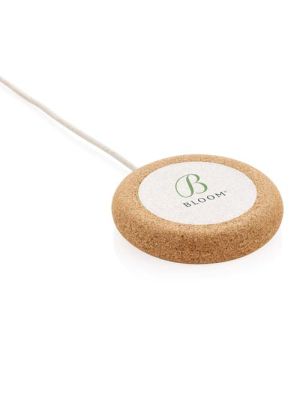 Cargador inalámbrico de 5W con paja de trigo (35%) mezclado con ABS y corcho natural. Con cable integrado de paja de trigo/tpe de 120 cm para uso directo. Compatible con todos los dispositivos habilitados para QI como Android de última generación, iPhone 8 y posteriores. Entrada: 5V/2A; Salida: 5/1A - 5W. Artículo y accesorios 100% libre de PVC.
