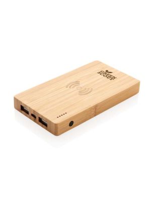 Powerbank de 8,000 mAh hecho de bambú y ABS natural y sostenible con acabado suave al tacto. Admite carga inalámbrica de 5W y carga a través del puerto USB por cable. Carga ambos a través de micro USB y tipo C. Cuando esté completamente cargado, te proporcionará suficiente energía para recargar tu teléfono móvil hasta cuatro veces. El powerbank contiene una batería de polímero de litio de 8,000 mAh de grado A de larga duración. Los indicadores de energía indicarán el nivel de energía restante para que siempre sepas cuándo recargar. Micro entrada 5V/2A Entrada tipo C 5V/2A Salida USB 5V/2.4A. Salida inalámbrica 5W 5V/1A.