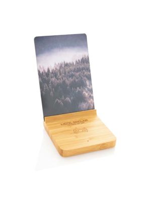 Cargador organizador inalámbrico de línea nature con función soporte para smartphone. Salida USB (cable incluido) de 1.000 mA. Permite cargar de manera simultánea hasta 2 dispositivos (1 mediante carga inalámbrica y 1 mediante cable). Hecho en bambú procedente de cortes naturales, con bandeja para objetos troquelada. Compatible con dispositivos equipados con tecnología de carga inalámbrica. Amplia superficie de marcaje y presentado en atractiva caja de diseño eco.