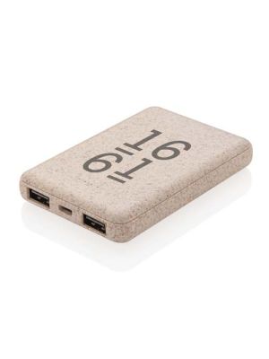 Powerbank ultracompacto de 5.000 mAh hecho de fibra de trigo natural (35%) mezclado con ABS que cabe en tu bolsillo tan perfectamente que puedes llevarlo a donde quiera que vayas. Cuando esté completamente cargado, te proporcionará suficiente energía para recargar tu teléfono móvil hasta tres veces. El powerbank contiene una batería de polímero de litio de alta densidad de 5.000 mAh de grado A de larga duración. Con doble puerto USB. Los indicadores de energía indicarán el nivel de energía restante para que siempre sepas cuándo recargar. Entrada 5V/2A. Salida USB 1: 5V/2A Salida USB 2: 5V/1A