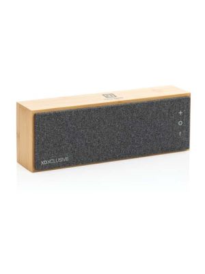 Altavoz de lujo de 10W con sonido claro y graves potentes. El altavoz está hecho de bambú natural y tela, una combinación que se ve bien en cualquier lugar de tu casa, oficina o en cualquier lugar donde necesites tu música favorita. El altavoz viene con BT 5.0 para un funcionamiento fácil y suave hasta 10 metros y un bajo consumo de energía. La batería de 2000 mah permite un tiempo de reproducción de hasta 6 horas y se puede recargar completamente en 2 horas. Con función pick up y micrófono para contestar (video) llamadas. Incluye cable de microcarga de material TPE sin PVC. Presentado en caja de regalo de lujo.