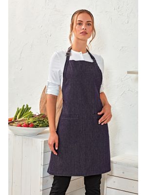 Delantal ecorresponsable «Regenerate»65% poliéster/ 35% algodón. Algodón reciclado, poliéster reciclado, mezcla de fibras fabricadas con denim reciclado. Bolsillos laterales inclinados con dobladillo a contraste. Tira del cuello anudada ajustable. Pespuntes en color contrastado. Hebilla ajustable de latón antiguo en la tira del cuello.Desde 18,96 € /ud