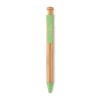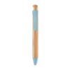 Descripción | Bolígrafo de pulsador con cuerpo de bambú. Clips y punta de colores a juego fabricados en paja de trigo 50 % y ABS 50 %. Tinta azul. |