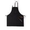 Descripción | Delantal pro de alta calidad en resistente material 100% algodón canvas de 340g/m2. De corte por debajo de la rodilla, con cintas de cuello y cintura en resistente polipiel con ajuste mediante hebilla y reforzado con remaches metálicos. Incluye multitud de bolsillos para los distintos utensilios, con las costuras reforzadas. |