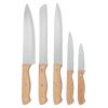 Descripción | Juego de cuchillos de madera. Incluye soporte de base y 5 cuchillos: para Chef, de pan, rebanador, multifuncional y pelador. Acero inoxidable con mango de madera. |