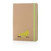 Descripción | Libreta de tapa reciclada con papel reciclado. 72 hojas/144 páginas de 70g/m2. Papel de color crema. Banda elástica y marcador de hojas. |