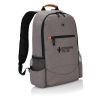 Mochila poliéster 600D en 2 colores con modernos detalles en marrón en las asas y cremalleras. Sin PVC.