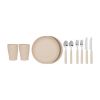 Descripción | Mochila nevera jaspeada para picnic en RPET 600D. Incluye accesorios de mesa para 2 personas: cuchillo, tenedor y cuchara de acero inoxidable, PP y vaso de paja de trigo. |