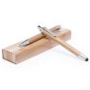 Descripción | Set de bolígrafo de mecanismo pulsador y portaminas en original combinación de cuerpo en madera de bambú natural y accesorios de acabado metálico en color plateado brillante. Presentado en estuche individual troquelado de cartón brillante con acabado símil madera. Bolígrafo de cartucho jumbo con tinta azul y portaminas con minas de 0,7mm incluidas. |