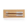 Descripción | Set de bolígrafo y roller de línea nature. Fabricado en combinación de corcho natural con metal, para así fomentar la utilización de materias primas naturales y reducir las emisiones contaminantes. Bolígrafo de mecanismo giratorio en tinta azul. Roller con capucha y tinta gel en azul, con carga jumbo metalizada. Presentado en estuche individual de corcho con interior en antelina. |