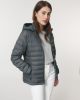 Cuello alto con capucha desmontable con broches metálicos ocultos en acabado mate