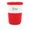 Una alternativa sostenible a las tazas tradicionales! Dando estilo y practicidad a tu viaje matinal, esta taza de café PLA es ideal para llevar tu bebida caliente favorita. Esta taza no solo es elegante sino también amable para el planeta. Viene con un agarre de silicona y una tapa para tu comodidad. 100% libre de melamina. Capacidad 380ml.